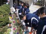 3月14日、生徒会役員7名が玄関前にある花壇の花を、 パンジーの代わりにダリア、...
