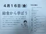 今日の献立は、カレースープスパゲッティ キャベツのピクルス、りんご、おさつパン、...