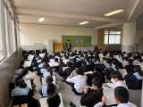 ?2年生が三角ホールで学年集会を行いました。 2年生は自覚と責任が必要。3年の先...