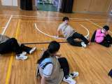 室内レクレーションで盛り上がっています。クラスの団結が深まっています。
