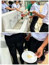 2年生の理科の授業のようすです。炭酸や調味料を使い、噴火の仕組みについて学びまし...