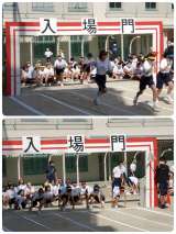 入場行進では、旗竿に差していた学級旗は、体育館壁面に掲示しました。いずれもクラス...