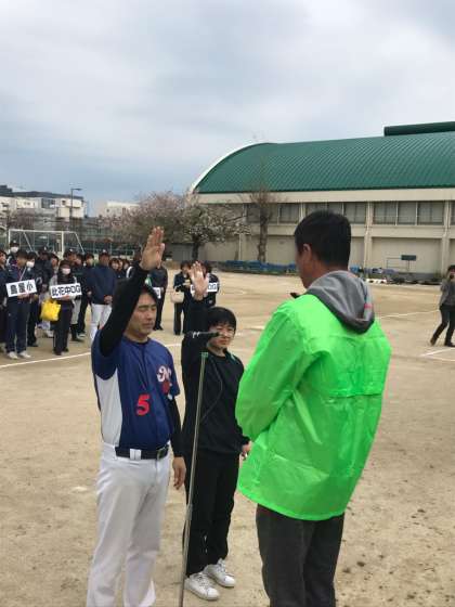 開会式ではPTAバレー部キャプテンが選手宣誓を行いました。