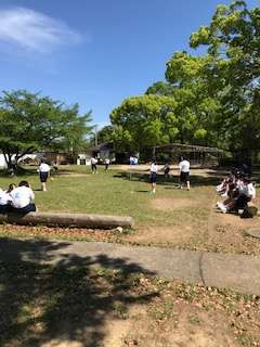 宿舎の裏庭でかわったドッチボール? iPhoneから送信