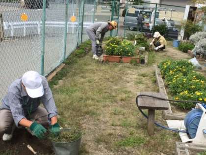 月二回、ボランティアの方が校門前の学習園の手入れをしてくださっています。