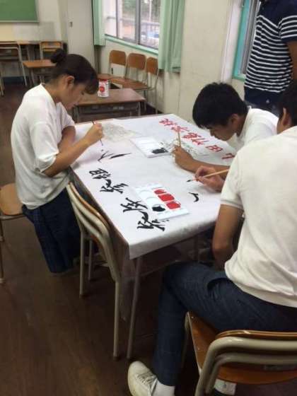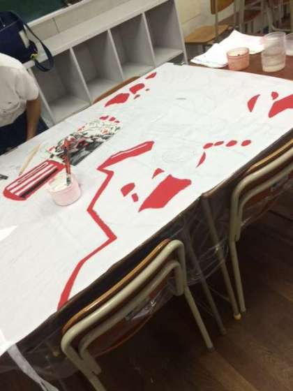 体育大会に向けて、3年生学級旗製作中の様子を撮りました。