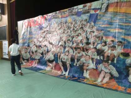 体育館いっぱいに皆で展示をしています。