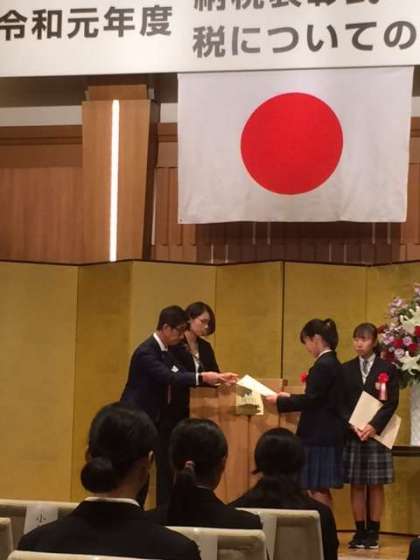 本校3年生女子が「大阪福島納税貯蓄組合連合会会長賞」を受賞し、表彰されました。