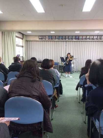 多目的室で開催されました。まず自分の選んだソロ曲を演奏し,