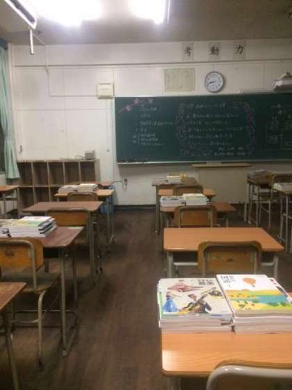 ひとりひとりの机に教科書が置かれ、新入生を待っています。