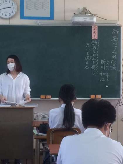 午後はますます日差しが強く暑くなりました。3枚目の写真は国語の授業風景。「めあて」が黒板に示され、皆、一生懸命取り組んでいました。