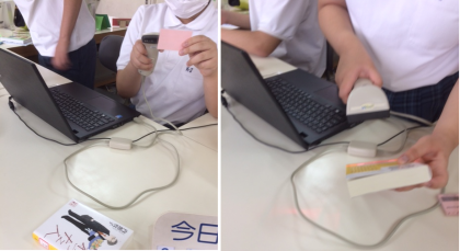 図書委員さんが「利用者カード」のバーコードと本のバーコードを読み取り、あっという間に貸し出しが完了しました。