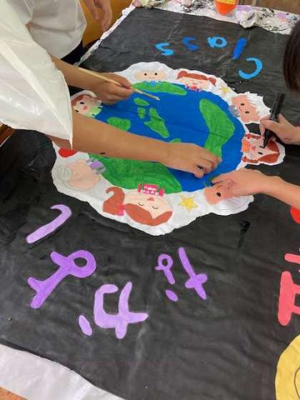 一年生の制作が進んでいます。とても丁寧です。1組2組3組です。