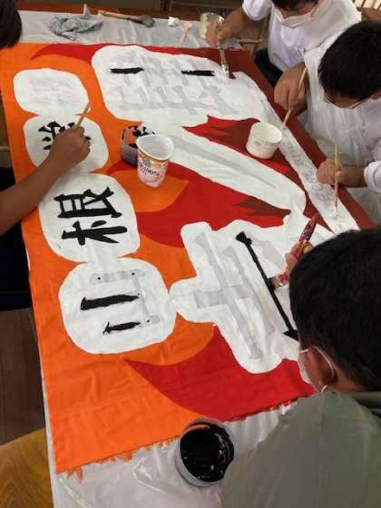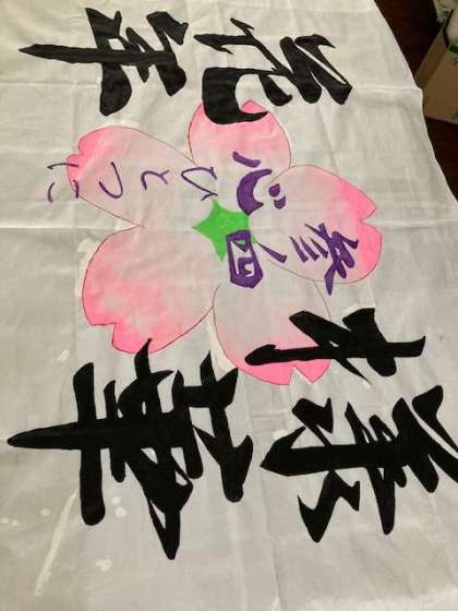 1年4組と3年4組です。さらにさらに凝った学級旗になりそうです。3年1組2組3組は後日、掲載します。完成が楽しみです。