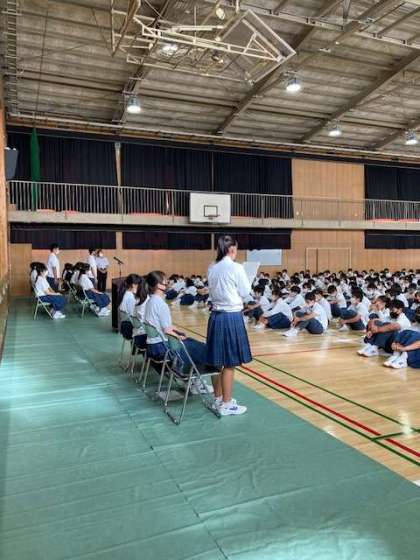 「春日出中学校生徒会役員になったらこうしたい」という自分の思いを自分の言葉で原稿を見ることもなくしっかりと伝えていました。
