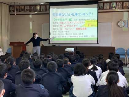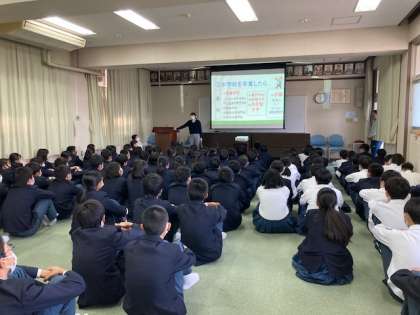 2年生は6時間目、進路指導主事櫻井先生から進路についての話を聞きました。自分の夢をかなえられるよう、しっかり考えて実行しよう。