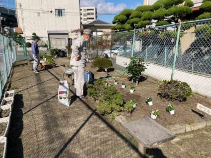 学校元気アップの緑化活動ボランティアさんが正門前の学習園の世話に来てくださいました。