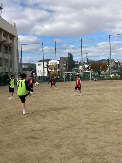 2年生体育サッカー、少し風が冷たいです。