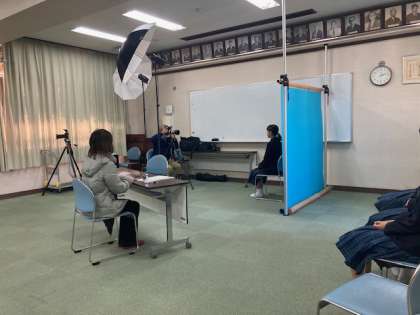 午後、先週に続き卒業アルバム用の写真を撮影しました。どのクラスも工夫を凝らしています。準備が整ったらマスクを取って笑顔で…。卒業式まであと3ケ月です。