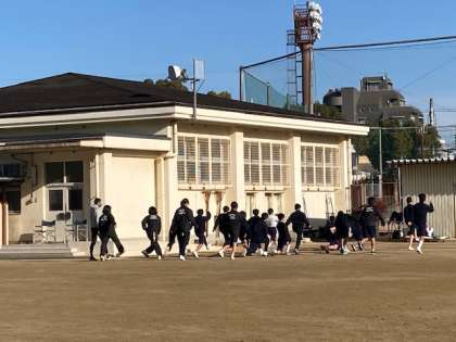 陸上部:今日は指導員の先生が来られる日。休みでなまった身体をほぐします。