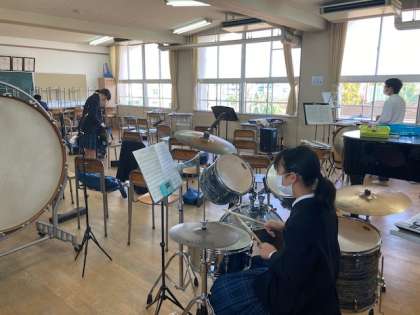 吹奏楽部:パートに分かれて練習。ここはパーカッションパートです。