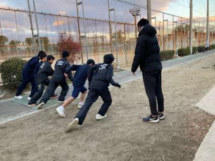 野球部:タイヤ引き、重そうです。
