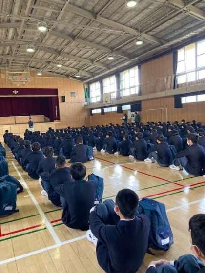 新2、3年生は体育館で新しいクラス分けを受け取りました。