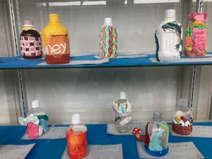 1枚目:美術科作品 昨年度1年生制作「不思議な花びん」本館3階廊下のケースにあります。