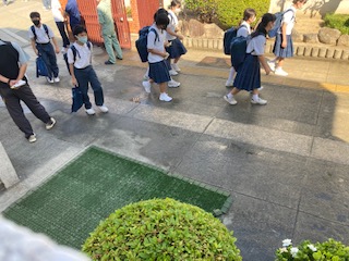 朝の登校時、日陰中心に打ち水をしていただきました。これだけでも体感温度は変わるようです。