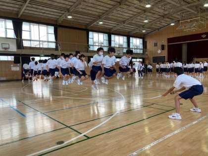 2年生は、9月に延期になった一泊移住に向けて大縄跳びの練習が始まりました。インターネットで必勝法を調べて工夫しています。