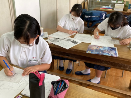 美術部活動中。思い思いの表現があふれています。完成が楽しみです。