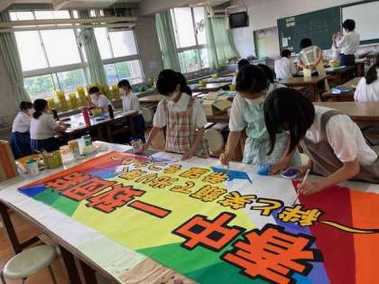 美術部:スローガンが仕上がってきました。文字がくっきり…。