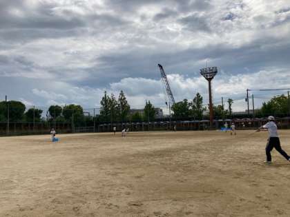 野球部:春日出グランドでこちらもゆったり先生のノックを受けていました。