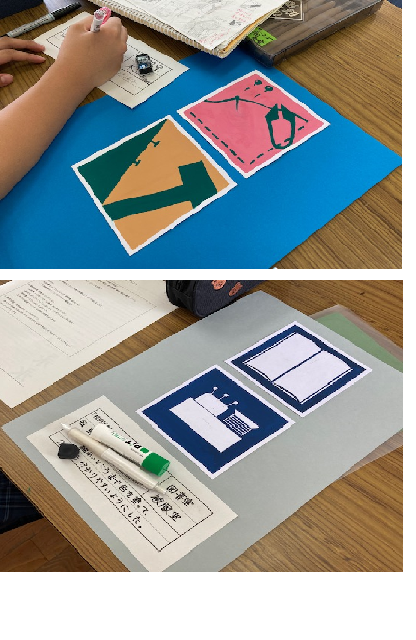 2年生美術の授業:オリンピックでも話題になったピクトグラム。校内のどの場所を表しているのでしょう。ていねいに美しく仕上げました。