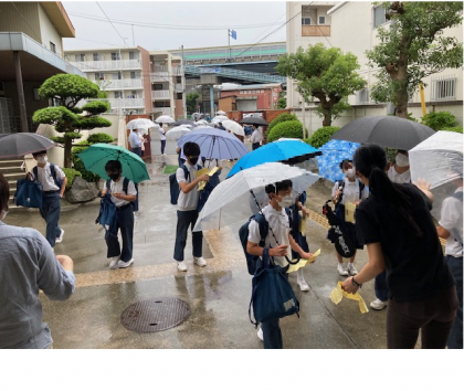 引き続き感染防止対策として、ご家庭での登校前の検温と「健康調査票」への記入をよろしくお願いします。教室へ入る前に「健康調査票」を確認します。