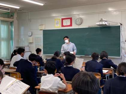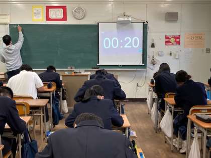そして、授業が始まり小テストに集中しています。先生は今日の目標を黒板に書くところです。