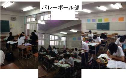 陸上部とバレーボール部は、自由参加の学習会を理科室、2年生教室で行ってました。