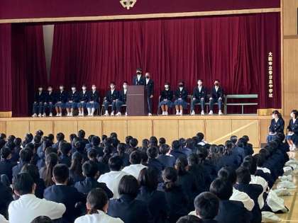 全員、原稿も見ずに、しっかりと自分の思いを語りました。部活動を活発にしたい、コミュニケーションを大切にする学校にしたい、挨拶を大切にしたいなど、どの演説も大変すばらしい内容でした。フロアの人も集中力を切らさず聞き入っていました。
