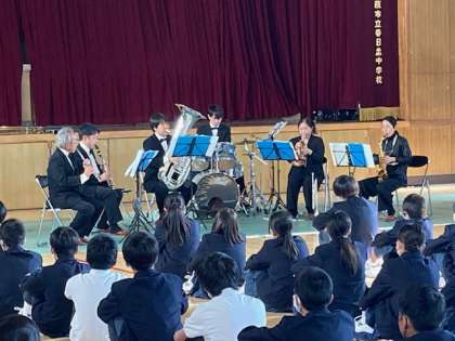 文化庁主催の「令和3年度 文化芸術による子ども育成総合事業〜芸術家の派遣事業〜」により6名のプロの演奏家が来校され、今回は2年生が鑑賞しました。