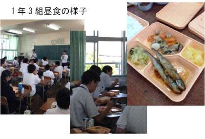 先週に引き続き西原此花区長さんが来校され、1年3組に入り生徒と一緒に給食を食べられました。今日のメニューは「中華丼」・「揚げししゃものねぎ塩ソース」・「茎わかめとキャベツの炒めもの」・「りんご缶詰」・「米飯」・「牛乳」でした。