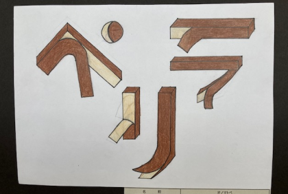 楽しい作品が廊下に展示されています。左から「ぺらり」「ぎゅうぎゅう」