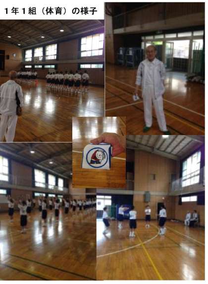 1年生の体育は、「ラジオ体操」をしっかり学んでいます。その様子を見学したいと区役所を通じ、此花区ラジオ体操連盟会長である、岡 實 様が来られました。