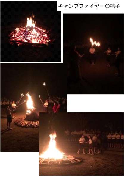 「キャンプファイヤーは、各クラスのスタンツ係が頑張り、また、レクレーション係の考えたゲームで大変盛り上がりました。」