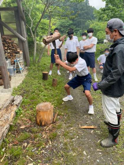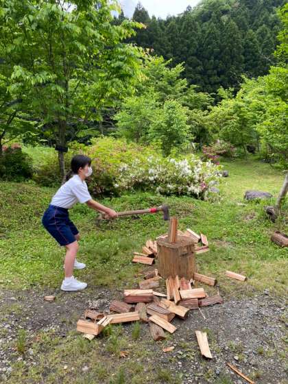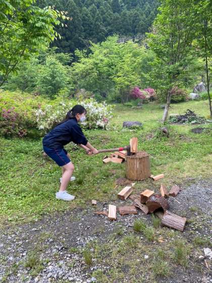 コツを掴んだ生徒はどんどん薪を割り、どの生徒も薪割りを楽しめてました!