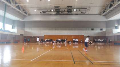 美浜町立体育館で2種目のクラス対抗のドッチボ−ル大会が始まりました。ト−ナメントで優勝を目指してがんばります。