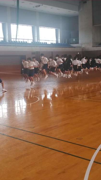 美浜町立体育館で最後のクラス対抗の大縄跳び大会が始まりました。クラス一致団結して最高記録を目指します。