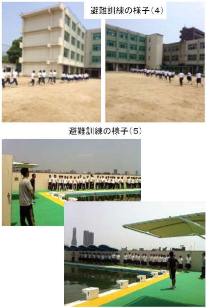 3分で人数確認ができ、学校長の講話の後、2次避難として津波を想定し、4階や屋上に避難しました。