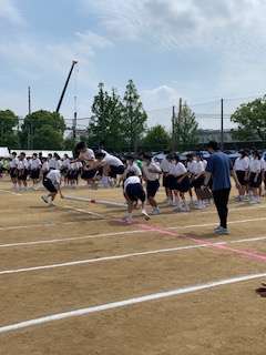 2年生学年種目の台風の目です。力を合わせて頑張っています。