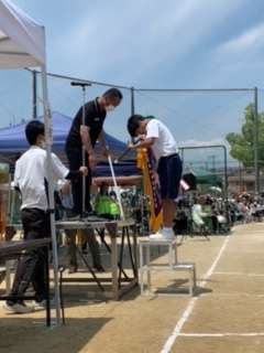 大きなけがもなく、全ての競技が終了し、閉会式が行われました。1年生は1組2組が同率で優勝、2年生は2組、3年生は3組が優勝しました。
