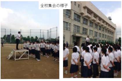 月曜日は全校集会の日です。いつも、生徒会の人たちが時間までに生徒たちを整列させています。その後校長先生の挨拶、お話となります。挨拶も大きな声で出来ています。